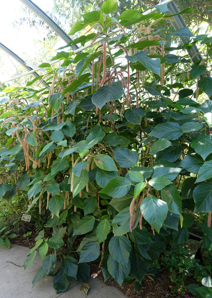 - Small flowers surrounded by bracks appear in short spikes in leaf axils. The Male flowers are on the upper portion and the female flowers are on the lower portion of the spike, Blooms late summer into fall