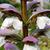 - 2-inch tubular flowers are surrounded by green or purplish spiny bracts and occur on a 1-2 foot spike. The flower is 2-lipped with the upper being purple and forming a hood over the lower 3-lobed lip which is white with purple or rose-colored veins. Spiny purle red bracts surround the flower. Blooms May to July.