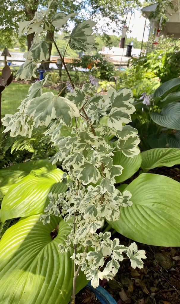 White variegated, blush of pink on new foliage - 'Pulverulentum'