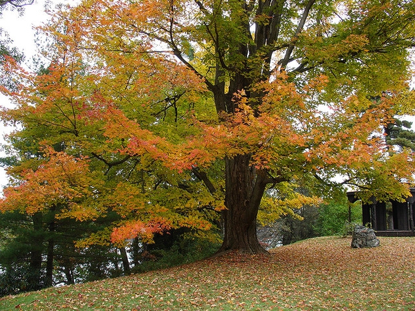 Northern sugar maple may reach 50 to 120 feet tall with a dense, spreading crown that provides heavy shade and grows slowly to medium, although it may grow faster in open areas. It grows best in moist, well-drained, slightly acidic, fertile soil in full sun but will tolerate average well-drained soils in sun to part shade. It is intolerant of compacted soil, high heat, air pollution, and road salt commonly found in urban environments.