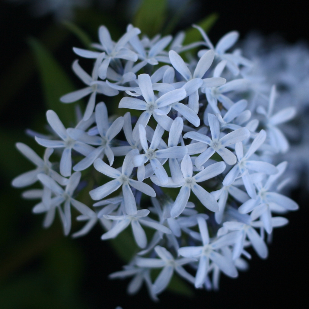 Clusters of 3/4", light blue, star-like flowers open in late spring atop erect, leafy stems. Its narrow, willow-shaped, dull green foliage may turn yellow in fall. The flowers are followed by elongated, pod-like fruits containing hard, black seeds that can be used for propagation.