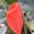 - Heart-shaped, colorful spathe and coiled orangish-red spadix. The orange bloom may have red, pink, or orange spathes, the sheathing bract that encloses the flower.