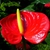 large, glossy green, heart-shaped leaves and waxy spathe of red, pink, orange, white with a straight white or cream spadix