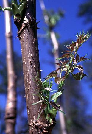 - The bark is gray-brown with persisting prickles and shallow furrows.