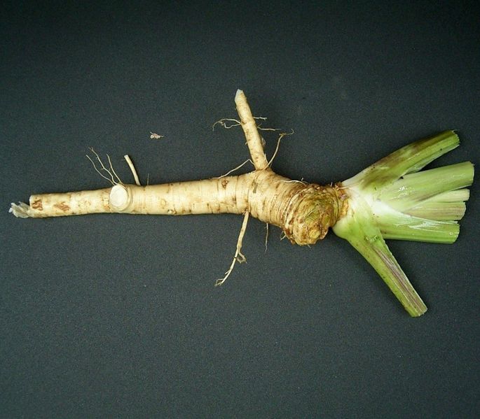 As a vegetable, it is grown for its fleshy roots that are harvested and grated to make relish, sauces, and seasonings. They have a hot, bitter taste that comes from mustard oils that are released when the plant cells are cut or damaged. The leaves are edible but rarely used.
