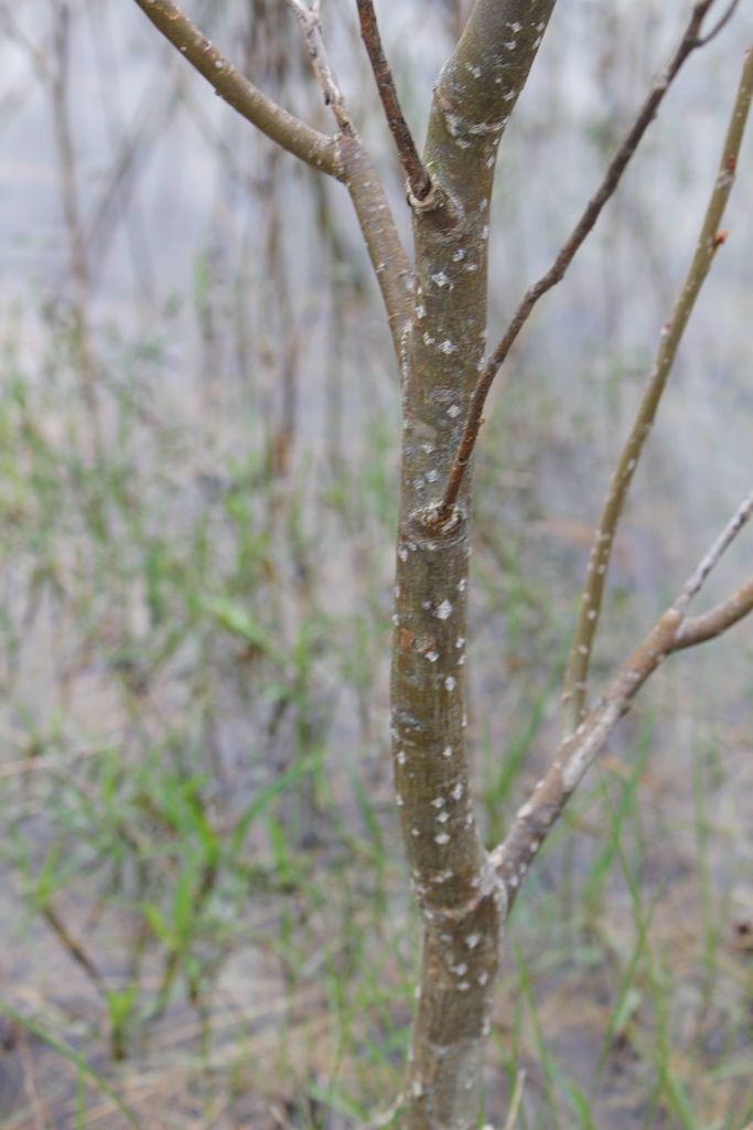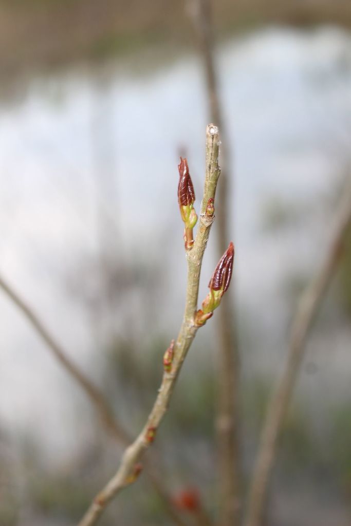 - Alternate, simple elliptic 1"-3", glossy, dark green finely serrate leaves that have a wine-red fall color. Color varies among seedlings.