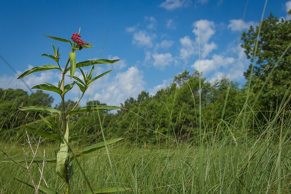 Swamp milkweed is an herbaceous perennial in the Apocynaceae (dogbane) family. Apocynum is the Greek term for “dog-away.” It is native to the central and eastern United States and tends to grow in wet sites along streams, ponds, or bogs.