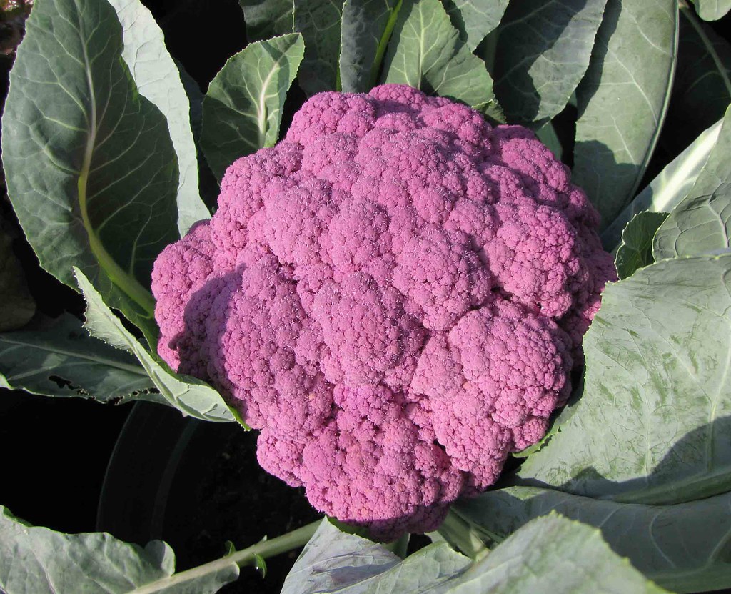 A patented hybrid variety of cauliflower. Color stays true when cooked. - 'Graffiti'