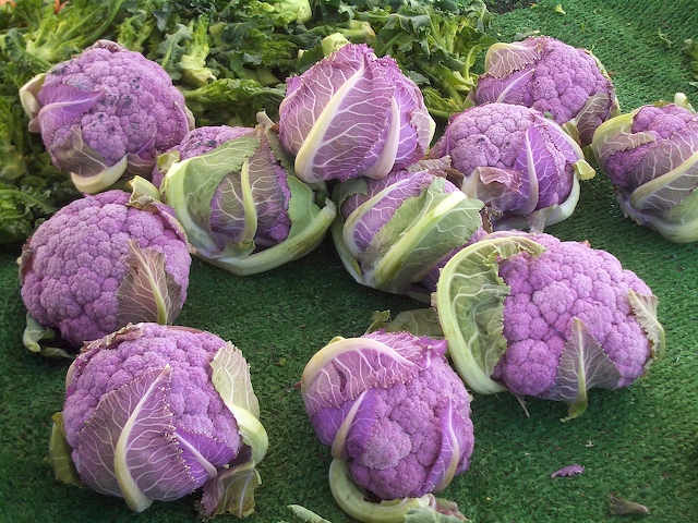 Rich purple heads of cauliflower