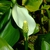 - The leaves are medium to dark green, heart-shaped, and taper abruptly to a narrow point. The leaves are simple, and the margins are entire. The edges of the leaf curl inward. Each leaf measures 2 to 4 inches long and appears waxy and smooth.