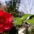 Large red blooms heavily variegated with white; semi-double form; compact growth - 'Black Tie'