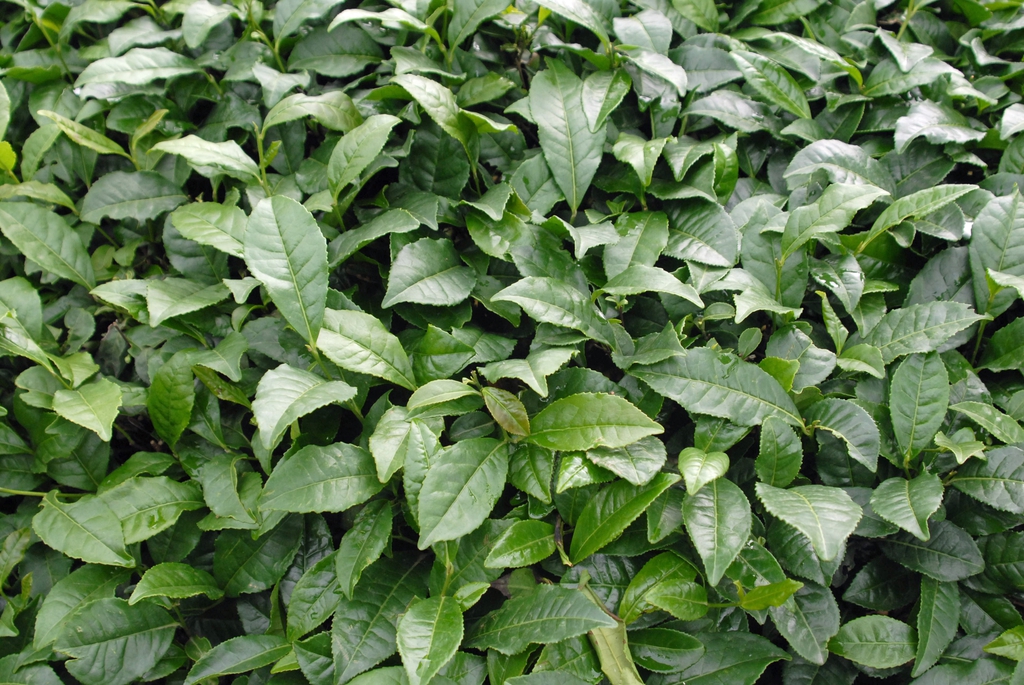 The Tea Camellia is a hardy evergreen shrub or small tree that is probably the most widely grown Camellia in the world traditionally used for caffeinated teas. They are harvested as the leaves emerge beginning early spring and processed in different ways to create white, green, oolong, and black teas. Smaller young leaves and leaf buds are used for making green tea, the older larger leaves for oolong and black tea, and the buds for white tea. There are two major varieties. Camellia sinensis var. sinensis is the Chinese variety that has small leaves and is more tolerant of cold weather hardy into USDA Zone 6. C. sinensis var. assamica is from the Assam region of northern India with larger leaves hardy to zone 7 and south. The differences in taste, color, and aroma between these teas are achieved by varying the variety, climate, harvest, oxidation, and processing.