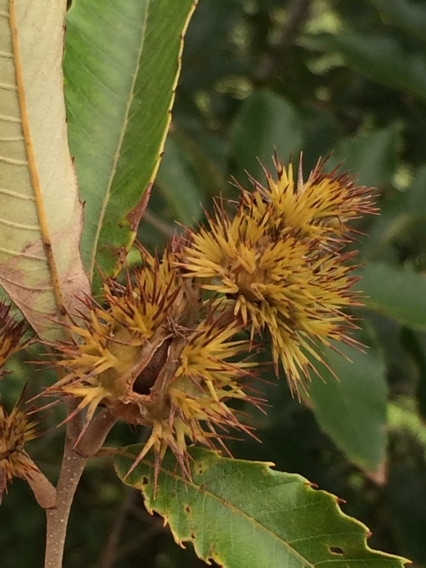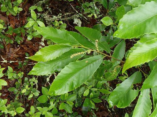 Chinkapin is a monoecious multi-stemmed, thicket-forming shrub or small tree with spreading lower branches and ascending upper branches. If grown as a tree in can reach 15-30 feet tall. It is resistant to the chestnut blight and can usually recover if infected. It can be found from the coast to 4500 feet elevation in the mountains.