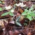Stripped Wintergreen a native, evergreen, rhizomatous wildflower in the shinleaf family and is found in dry woods in the eastern US. The white midrib stripe on the dark green leaf is an identifying characteristic. During the summer fragrant white to pinkish flowers appear in small nodding clusters. It is considered endangered in some states.