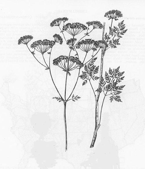 It grows 6 to 10 feet tall and 4 to 5 feet wide and quickly colonizes an area and displaces native plant species. Its white fleshy taproot has red spots and resembles a parsnip or carrot. The stems are hollow and have small purple spots. Showy white flowers look like umbrellas or like other members of the carrot family. The leaves of poison hemlock resemble parsley. The roots, leaves and stems have a foul odor when crushed.