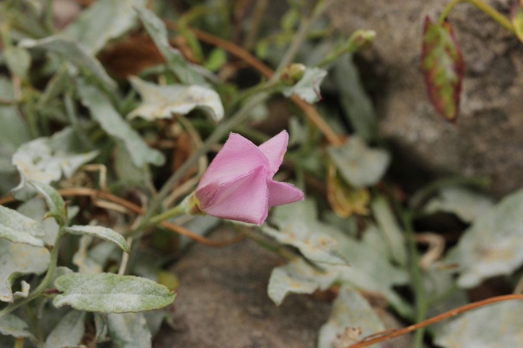 Field bindweed is a vine in the Convolvulaceae (morning glory) family native to Europe and Asia. Found growing in moist thickets, fields, lawns, agricultural fields, and disturbed areas. The common name devil's guts refer to its tendency to grow in a messy trailing or twining manner forming tangled dense mats