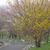 Low broad tree yellow flowers red fruits and good fall color