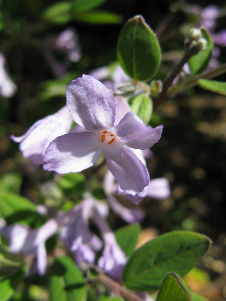It flowers on bare stems, prior to it gray-green foliage opening.
