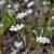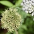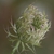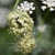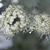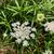 - Umbel of small white flowers in a lacy-looking flat-topped cluster; 3-4 in. wide; deep purple floret in the center
