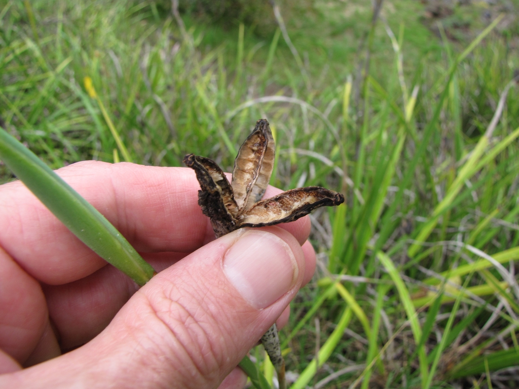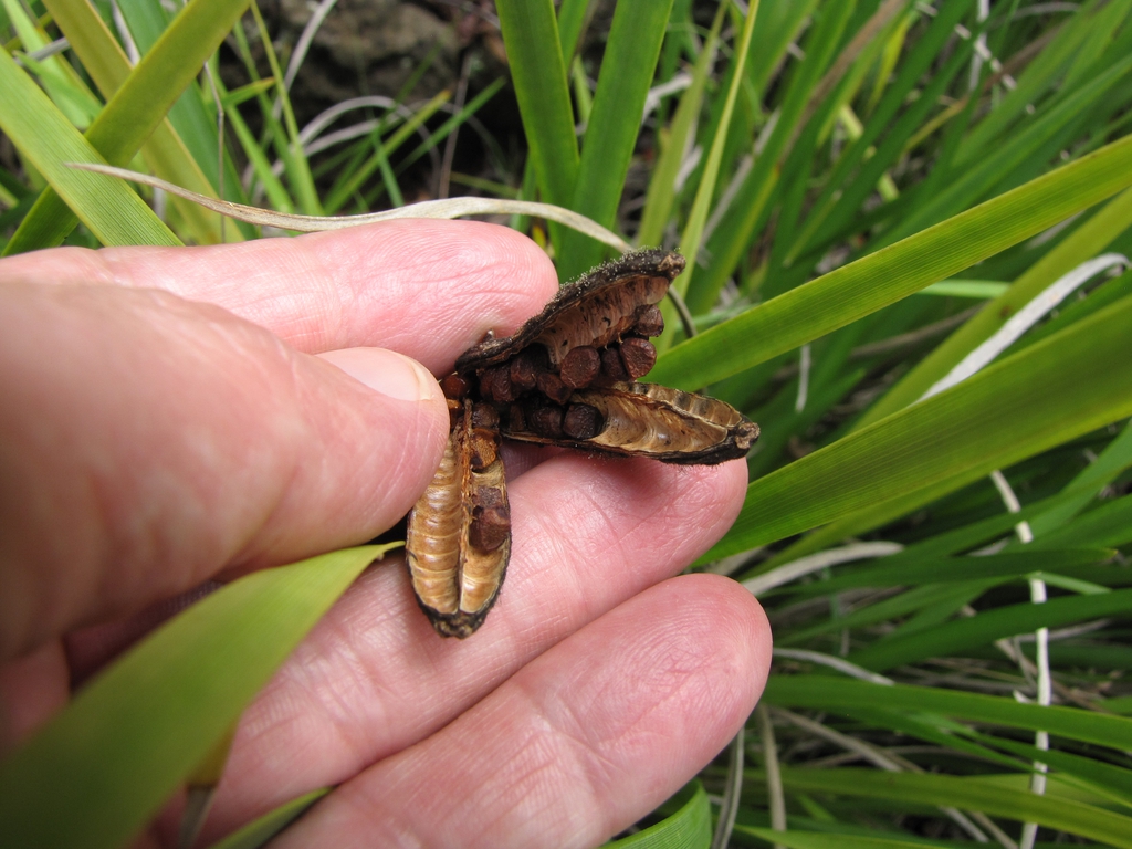 - Narrow, sword-shaped, basal, evergreen iris-like leaves in fan-shaped clumps.