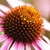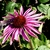 - Pink, purple, sometimes white ray flowers with a purple-brown cone of disk flowers in the center. The pollen color is yellow (which differentiates it from E. pallida's white pollen). The rays are narrow with notched tips and often droop downward.