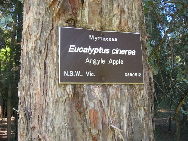 The Eucalyptus genus has 2 leaf morphologies- adult and juvenile; in zone 7b, specimens usually do not survive to the adult stage, so the leaves that we see are the orbicular, sessile, opposite juvenile leaves; bruised bark and leaves give off a characteristic eucalyptus odor; dried leafy branches sometimes are used in floral arrangements; in Australia and New Zealand, eucalyptus species are referred to as 'gums'.