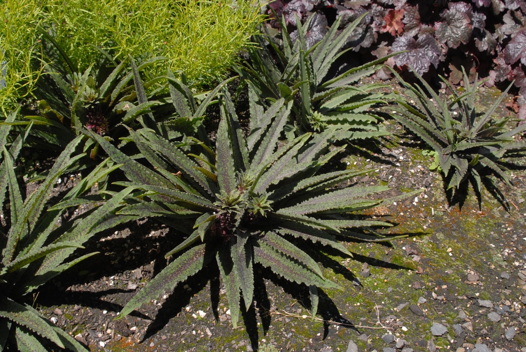 - The long, strappy, wavy-edged green leaves are up to 6 inches long and form a basal rosette.