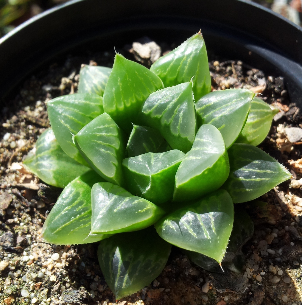 - The thick, lime green, triangular leaves are somewhat truncated, the tops covered by a translucent "window" that gives the leaf its triangular shape. The tips taper to a point. Bright light can cause many different colors to develop in the leaves.