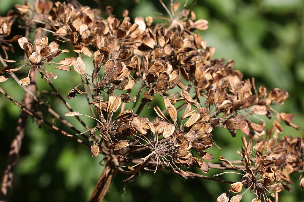 The first year basal leaves are formed but the second year a 4-15 foot tall flowering stem emerges with a 6-8 inch compound umbel of many small white flowers. Its flowers attract a large diversity of pollinators.