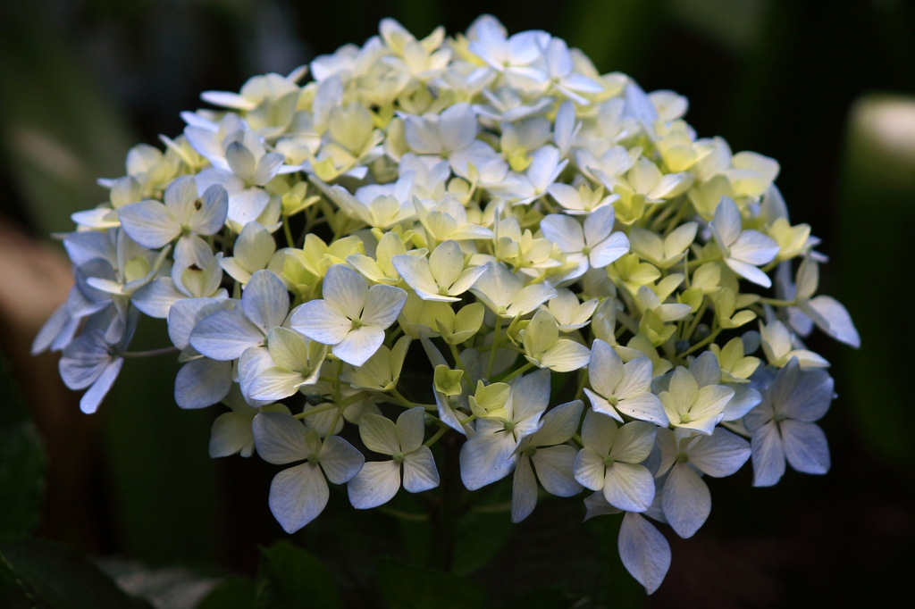 - Terminal, round or umbrella-shaped corymb clusters in colors of white, pink, or blue (or sometimes purple). Flowers are 4- 5-parted. The sterile flowers (around the margin or the entire cluster) are much enlarged. Bloom time varies per type but generally blooming falls between spring to fall.