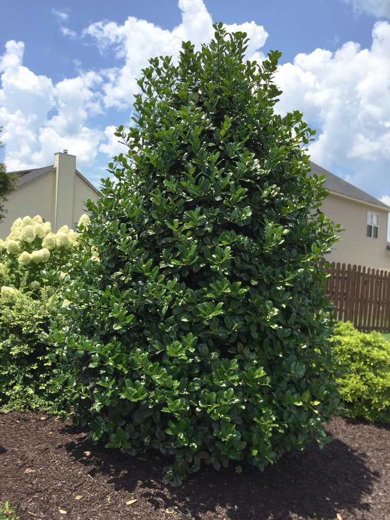'Mary Nell' matures at 20 to 25 feet in height with a moderately formal pyramidal shape and very dense foliage. 'Mary Nell' is most often used as a hedge, foundation plant, or as a specimen plant. It is appropriate for winter, formal English, or Asian gardens.
