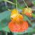 - The flower is orange to orange-yellow with reddish-brown spotting, measuring about 1 inch in length. Each flower dangles from a leaf axil on its own slender stalk and can appear in small clusters of 1 to 3 flowers. Each has five petals of unequal size and five stamens. The pistil is composed of five united carpels. The flower has an upper lip formed from one petal, two lateral petals, and two fused petals form the lower lip. It also has three sepals with the lower one extended backward as a spur. Blooms from July through October.