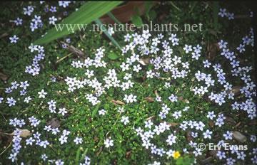 Blue Star Creeper prefers partial shade or dappled sunlight; moist soil; and tolerates foot traffic. Because it is shade tolerant, it is a good ground cover for growing under taller plants. It is often found growing in moist sand or mud along the margins of creeks and streams, or among granite outcrops and wet depressions. This evergreen plant is easily ripped apart into small pieces, which make new plantings for early spring.