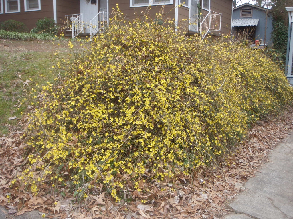 Winter jasmine prefers full sun to partial shade. It will grow in heavy shade, but the floral display will be reduced. It prefers well-drained soils, but it is adaptable to a variety of soil types and does well in poor soils. The cane-like, rapid growth creates colonies that look messy if unpruned. It can be rejuvenated by severe pruning after flowering. When pruning, keep in mind that flowers will appear on old (last year’s) growth.