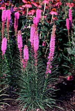 - Its flowers are attractive to butterflies, bees, and other pollinators. Larval forms of Schinia sanguinea (Liatris Flower Moth) feed on the flowers and seeds, and the larval form of Carmenta anthracipennis (Liatris Borer Moth) eat the stems. Goldfinches eat the seeds with relish. Dead stems are used by stem-nesting bees