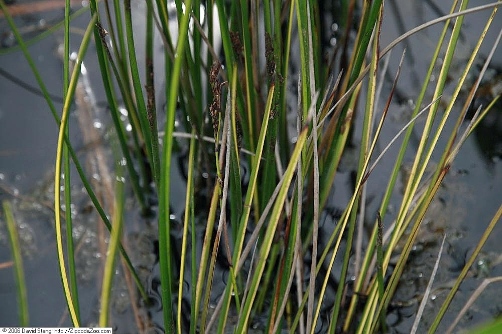 'Variegata' is a cultivar of M. rubiginosais, or Striped Rush, a water-loving perennial in the sedge family native to tropical Asia, Japan, and New Zealand. 'Varegata' is distinguised by its sword-shaped variegated blades. The leaves or blades are deep green and striped along one edge with yellow. The blades form dense clumps by means of long, scaly rhizomes that will spread into colonies. The genus name is a reference to the blades from the Greek word 'machaira', which means 'a large knife'.
