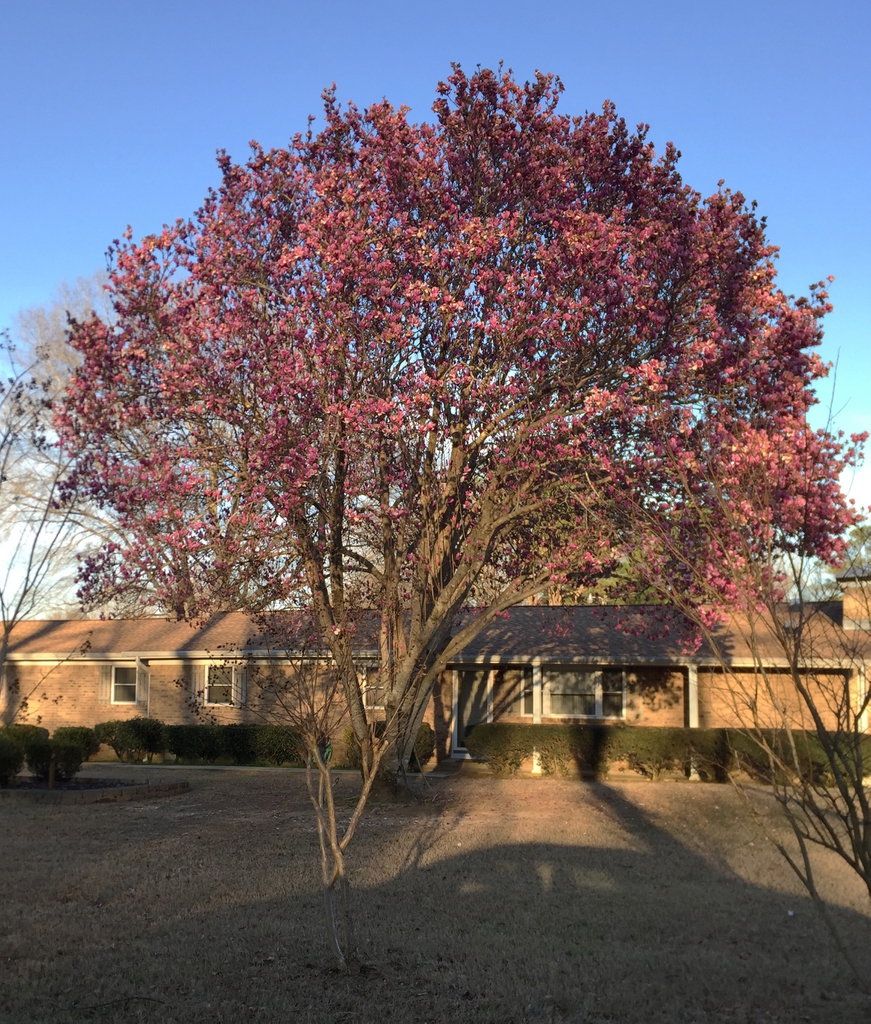 Gigantic cup-shaped flowers before leaves in late winter.