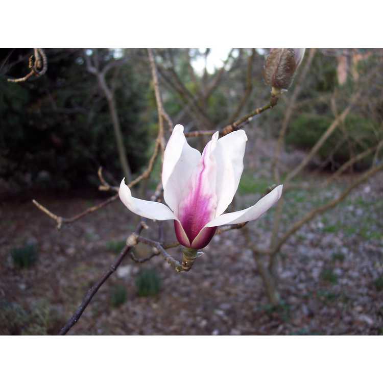 It has upright growth reaching 15 to 25 feet tall and 10 to 15 feet wide. This gray barked specimen is the earliest flowering magnolia with relatively small but very fragrant blooms appearing in the mid-to-late winter from February to March. Dark green leaves are pale green on the underside, and winter buds are covered with silky hairs. Late winter frosts can damage the flower buds.