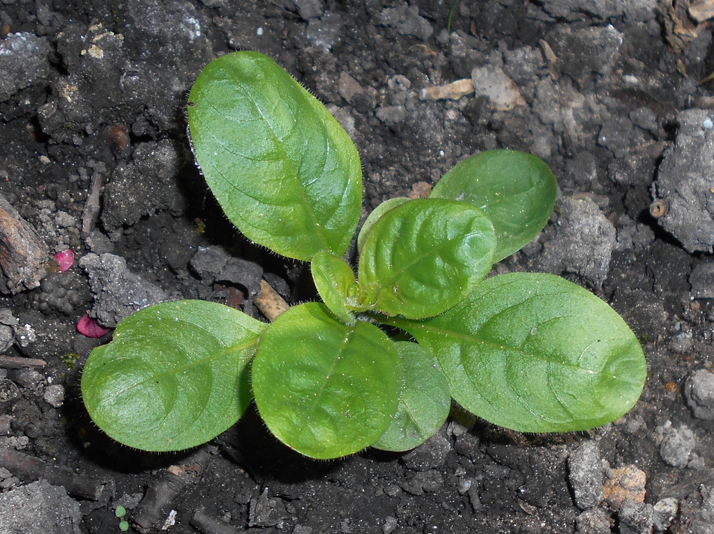 - The basal leaves are 1-4 inches long, lanceolate to oblanceolate and evergreen in warmer winters areas. They may have a purplish-green color in winter. They have entire or slightly wavy margins and are moderate to densely hairy. Stem leaves are opposite and shorter, 3/4- 1.5 inches long, and narrow elliptical.