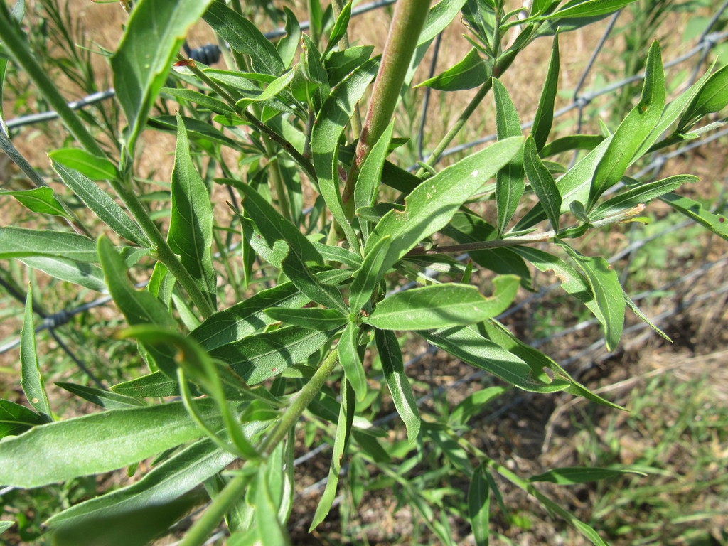 - First-year leaves are a dense flat rosette. Second-year they are opposite on the stem and stalkless, lance-elliptical shape, tip acute, base narrow, 3-7 inches long by .5- 1 inch wide. Undersides with short hairs, margins are entire or slightly dentate.