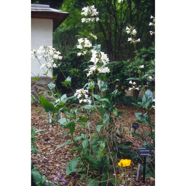 The eastern smooth beardtongue has a dark green basal rosette of oblong-lanceolate to lanceolate leaves, 3 to 7 cauline leaves along its upright stem, and pale purple blooms that appear in open clusters on the upper parts of the stems from May through July. The flowers are tubular and symmetrical with a hairy lower lip, hence the common name beardtongue.