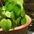 - Teardrop-shaped peltate (petiole attached in the center) green leaves with a dip in the middle where the petiole attaches.
