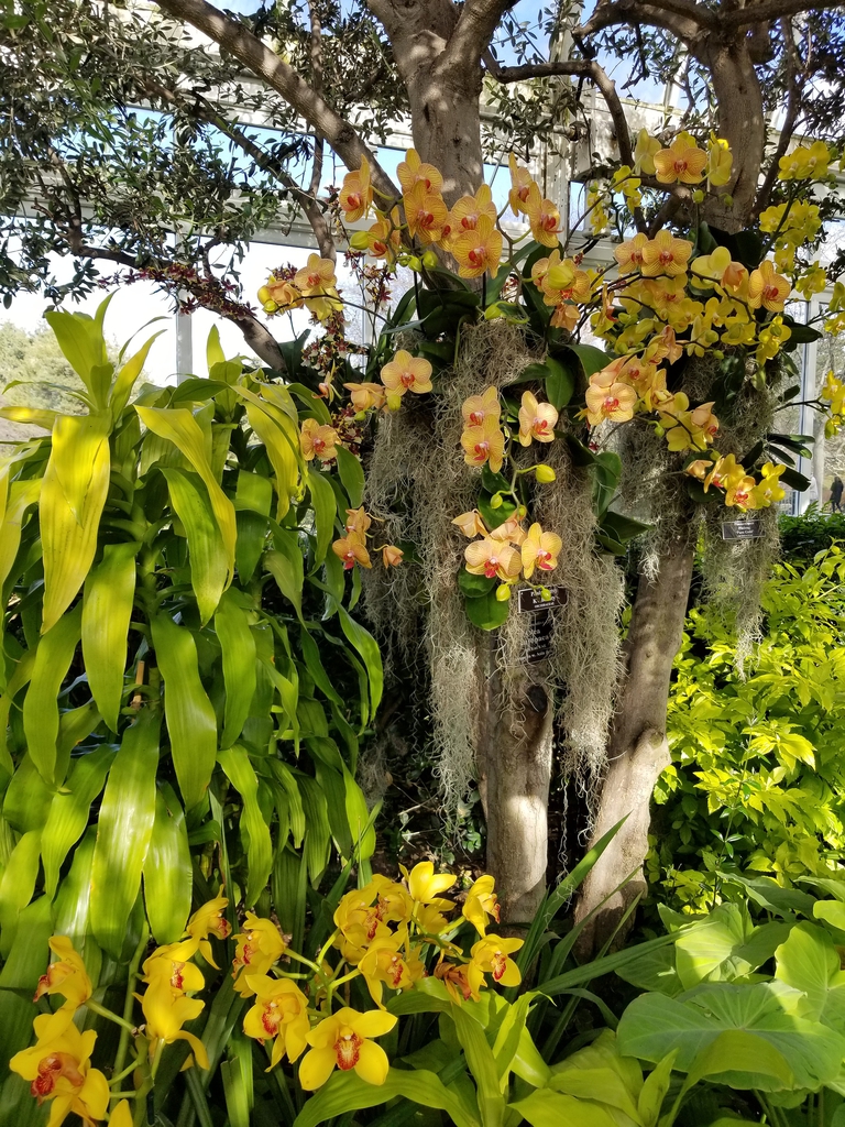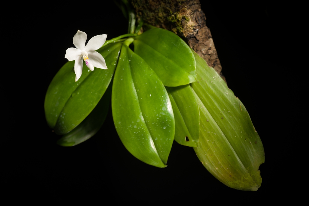 Moth orchids prefer low light, warm temperatures and high humidity. They are winter hardy in USDA Zones 10 to 12 and consequently must be grown as houseplants or greenhouse plants in North Carolina. The best placement in the house is on an east windowsill, but they can grow well on well-shaded west and south windowsills. Since they prefer warm, humid, damp but not soggy conditions, they are planted in pots with a bark-based medium that provides excellent drainage. The roots can photosynthesize, producing a green color from chlorophyll production, so clear plastic pots are often used. Orchids should be watered in the mornings with tepid water by placing plants in a sink and allowing water to flow freely through potting medium and foliage. Let the pot drain completely so that plants do not stand in water. Mature plants should be watered once weekly or more often in the heat of summer. Potting mix should dry some between waterings. If the growing medium is pure sphagnum moss, it can be difficult to rewet. It is better to repot such plants into bark-based orchid growing medium. Plants should be fertilized regularly with a balanced fertilizer twice monthly at half strength or weekly at quarter strength. Orchids need to be repotted approximately every two years after blooms have faded or as new leaves begin to appear. The flower stalk should be cut just above the fist node below the faded flowers; often (but not always) the node will produce a branch with more flowers.