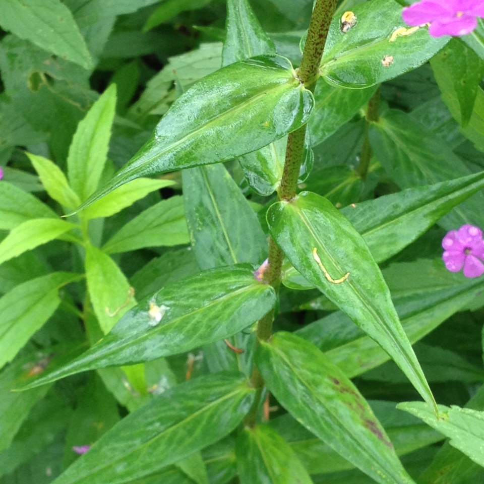 - Dark shiny green leaves are opposite, sessile, 2½-4" long and ½-¾" across, lanceolate in shape with smooth or finely toothed margins. They have wide bases with long slender sharply pointed tips. They are rounded at the base and have no petioles.