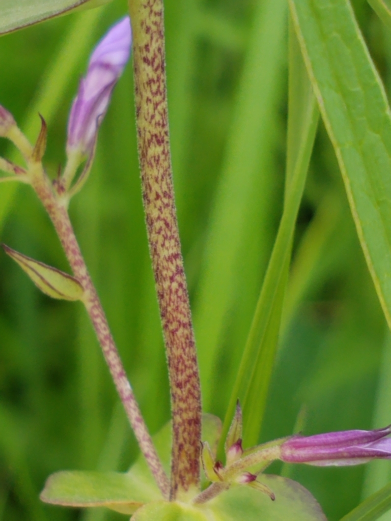 - Smooth round green stems with numerous red/purple spots, usually unbranched.