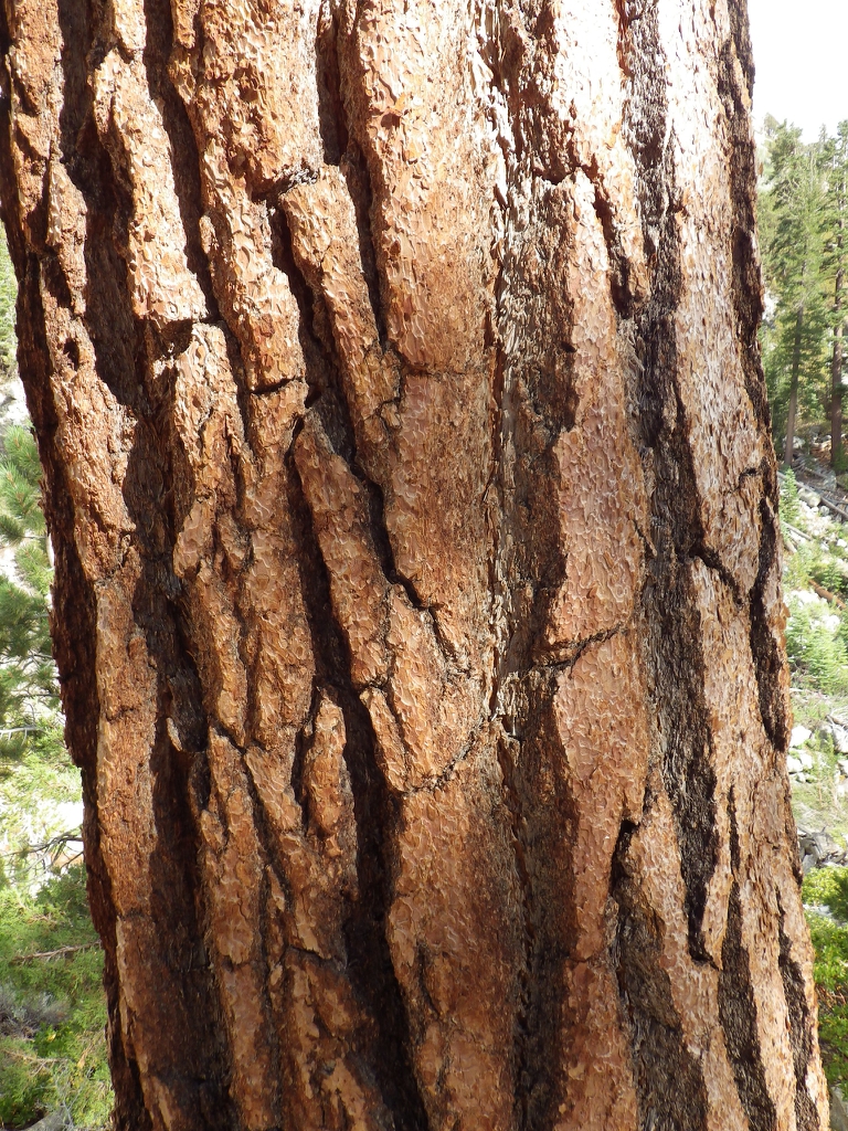 - The bark is cinnamon brown, thick, deeply furrowed and cross-checked, forming large irregular scaly plates, with an odor of lemon, vanilla or pineapple during the growing season.
