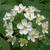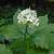 - Small white flowers with six sepals and six oval-shaped petals bloom in a rounded flower head.