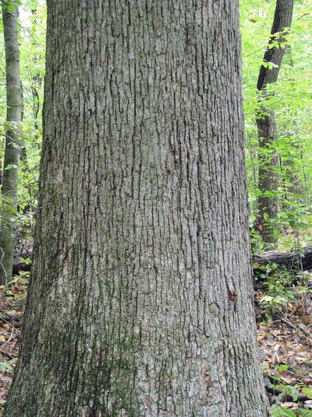 The white oak is a large slow growing deciduous, hardwood tree in the beach (Fagaceae) family and can reach heights of 135 feet with an 80-foot spread, but generally tops out at 80 to 100 feet. It is native to the eastern United States and is usually found in forested areas of dry slopes, valleys, and ravines. Young trees are typically pyramidal in form, but as the tree matures it has a rounded and broad crown. The distinct feature of this tree is its fingerlike lobed leaves with rounded tips and no bristles.
