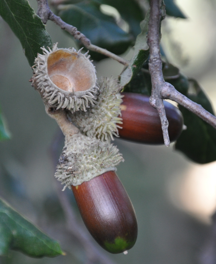 - fruit is a 1 to 1.5-inch long, narrow acorn with a scaly cap