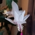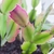 green, crab-like shaped leaves, white flower, white stamens, dark pink pistil